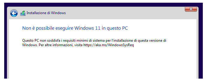 Questo PC non soddisfa attualmente i requisiti di sistema Windows 11: