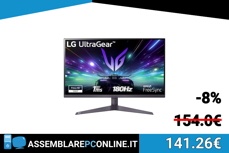⭕️LG UltraGear 27GS50F Monitor Gaming 27" FHD (1920x1080), 180Hz, 1ms, AMD FreeSync, HDR 10, HDMI 1.4, DisplayPort 1.2, Uscita Cuffie, Flicker Safe, Nero