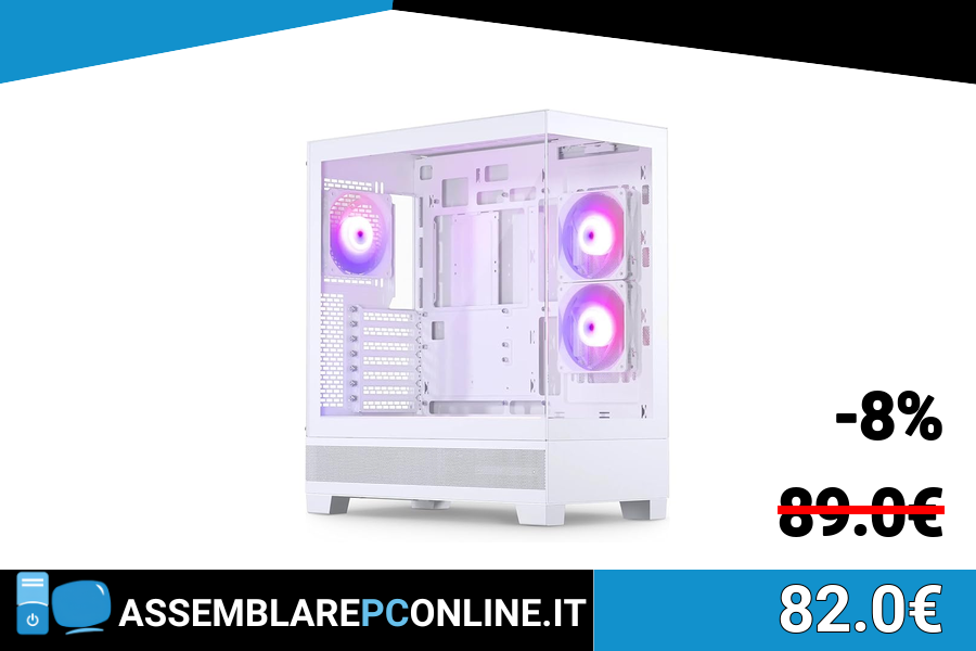 ⭕️Phanteks XT View, gaming mid-tower, finestrino anteriore e laterale in vetro temperato, USB-C 3.2 Gen2, 3 ventole M25-120 D-RGB incluse, Bianco