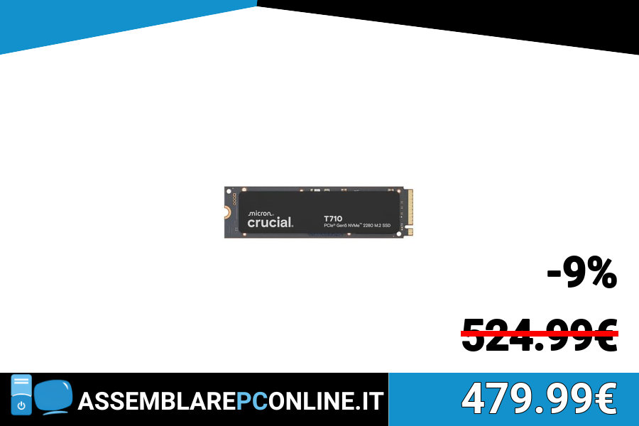 🎟FSIT03⭕️Crucial T710 SSD 4TB PCIe 5.0 x4 Gen5 NVMe M.2, Velocità fino a 14500 MB/s Lettura, 13800 MB/s in Scrittura, Notebook e PC Desktop, TLC NAND, Hard Disk Interno - CT4000T710SSD8-01